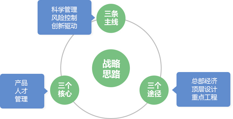 三條主線——“科學(xué)管理、創(chuàng)新驅(qū)動(dòng)、風(fēng)險(xiǎn)控制”。以科學(xué)管理為基礎(chǔ),創(chuàng)新驅(qū)動(dòng)為方向,風(fēng)險(xiǎn)控制為保障。